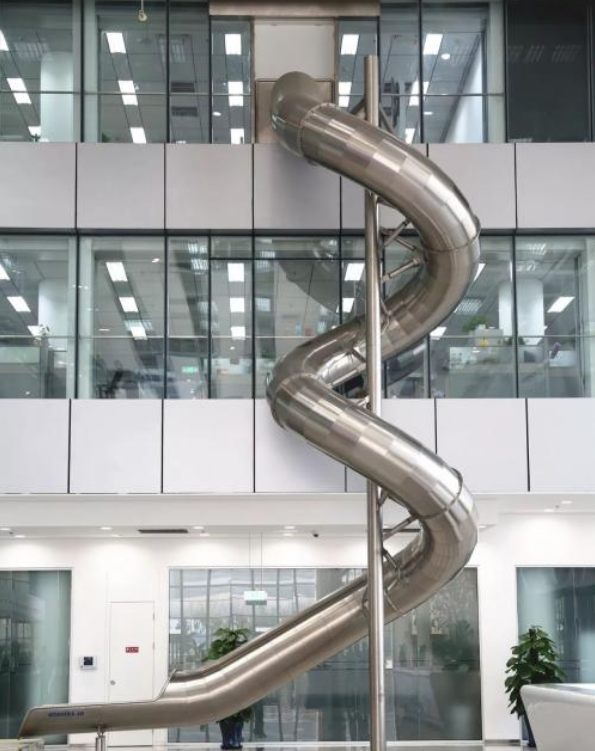 國內(nèi)也有裝上滑梯的樓,它就是百度科技園,位于中關(guān)村軟件園二期內(nèi),滑梯從三樓到一樓,目測長度有二十多米,下班不用坐電梯,這個(gè)設(shè)計(jì)堪比坐電梯,一溜煙就下來了,太歡樂了,整天的工作煩惱頓時(shí)都忘掉了。