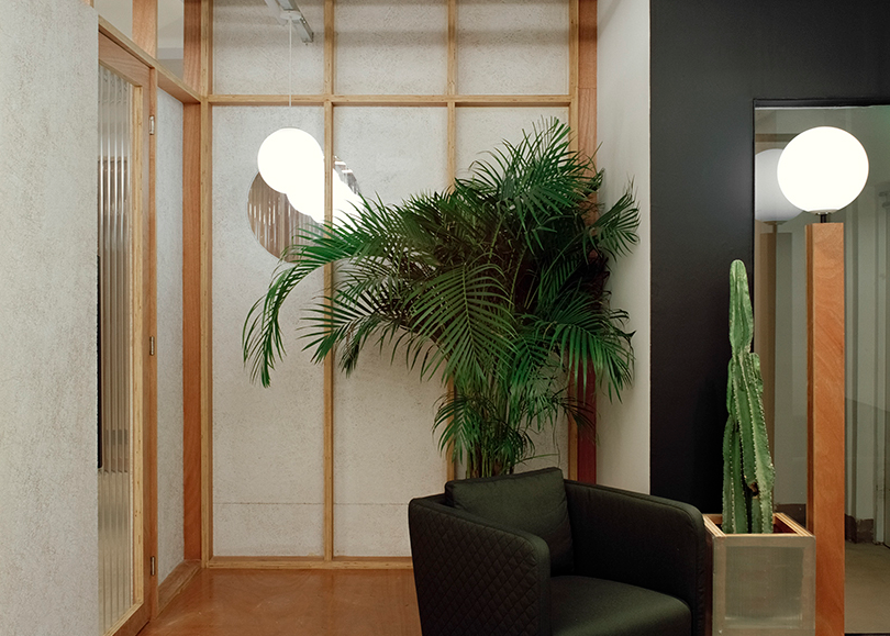 裝修以膠合板和混凝土為主要材料,完成了以幾何照明裝置和綠色植物為特色的室內設計。聚碳酸酯隔板作為設計的主要組成部分,允許一個適合現(xiàn)代工作場所的透明環(huán)境。下面一起跟著
