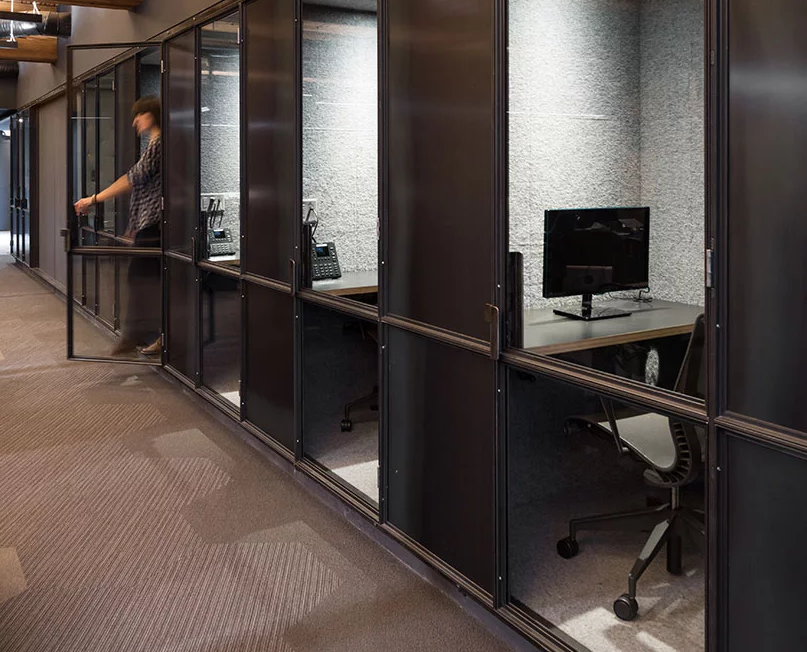 典型的靜態(tài)會議室辦公室裝修由移動會議室補充:安裝在車輪上的定制立方體會議室,用于便攜式突破或非正式會議空間。在開放式樓層辦公室裝修計劃中,員工們可以在“skype展位”中為skype會議和私人電話尋找獨處,這種半私有的小矮人來自電話亭的類型。這些獨特的空間允許一種戲劇,是發(fā)人深省和創(chuàng)造性的。