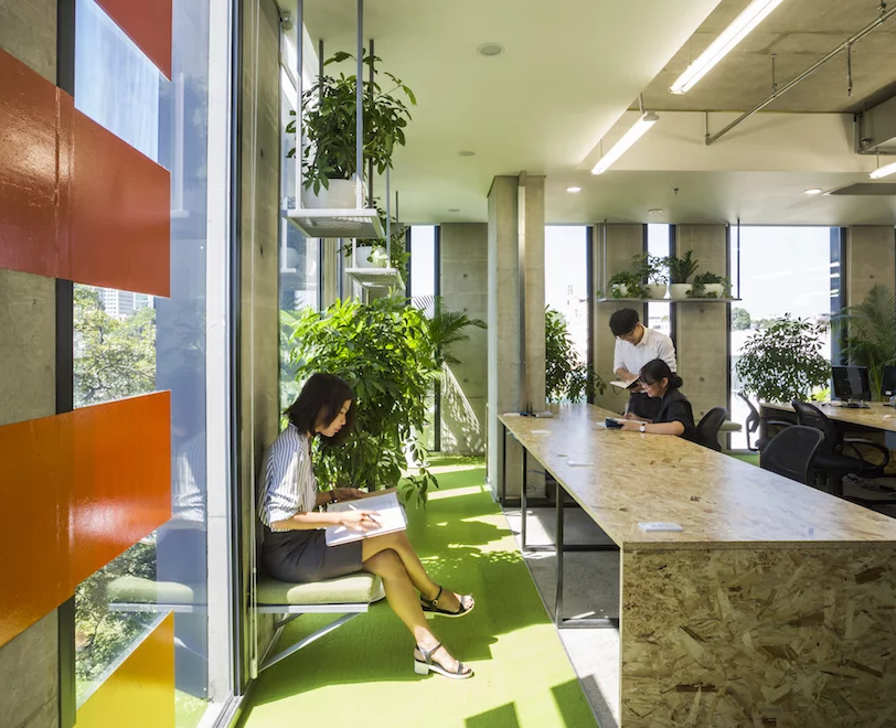 胡志明市這家旅游公司的越南辦事處進(jìn)行的辦公室裝修設(shè)計(jì)中,為了能提高工作效率,打造了一個(gè)“綠色辦公室”,因?yàn)樵O(shè)計(jì)師相信用植物來(lái)裝飾空間,可以增強(qiáng)工作能力。下面一起跟著華發(fā)小編來(lái)看看這家辦公室裝修效果圖吧。