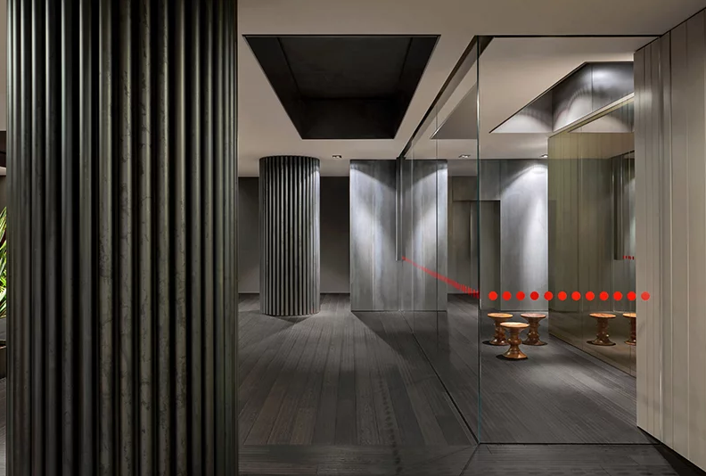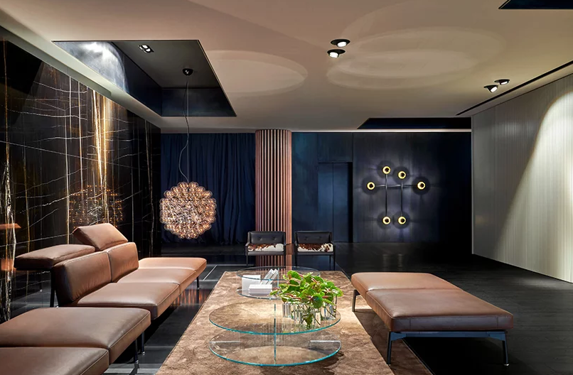 辦公室裝修的8樓,開(kāi)放美麗的城市景觀,是為Adris Grupa管理委員會(huì)主席和最親密的伙伴。它的融合體現(xiàn)在企業(yè)豪華、舒適和戲劇氣氛的結(jié)合上,辦公室裝修強(qiáng)調(diào)了奢華和“工業(yè)”材料,如暗鋼、納洛撒哈拉大理石、玫瑰木單板、橡木地板和銅管,并以高光澤的紅色表面的形式孤立地吸引了視覺(jué)吸引子。公司不使用巨大的手段來(lái)傳達(dá)威望。相反,游人的活動(dòng)是精心編排的充滿(mǎn)驚喜的辦公室裝修空間戲劇的一部分,即滑動(dòng)屏幕打開(kāi)并消失在墻壁上,反射面破壞空間知覺(jué),意想不到的視角正在打開(kāi)。