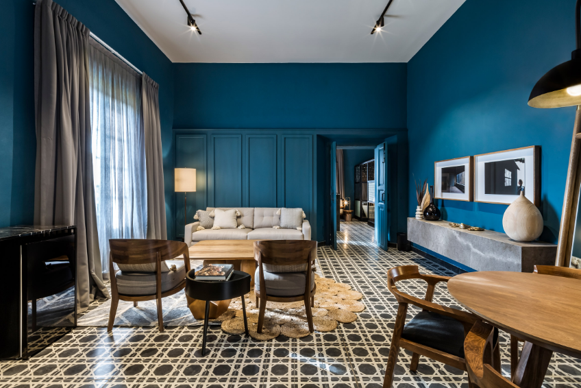 該酒店裝修小組還修復(fù)了建筑物的屋頂平臺(tái)和殖民風(fēng)格的庭院,周?chē)腔疑氖?,家里有一個(gè)200年歷史的橡樹(shù)樹(shù)和一個(gè)巴黎噴泉在1850的時(shí)候栽植的。
